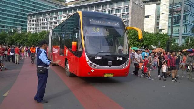 | Transjakarta melintas di Bundaran HI pada hari bebas kendaraan Oleh: Pak Wali |