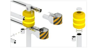 Bingkai balok dan tabung roll yang bersifat elastis menyerap kejutan dari tubrukan. Permukaan halus pada bingkai dapat menyesuaikan ban kendaraan sekaligus memandunya tetap dalam arah gerak sehingga dapat mencegah tabrakan dari arah belakang (kecelakaan beruntun). Struktur tiga dimensi dari rangka berbentuk D dan tiang penyangga secara terintegrasi akan mendistribusikan sekaligus menyerap gaya kejutan sekunder, sehingga dapat menghentikan laju kendaraan secara lebih nyaman.