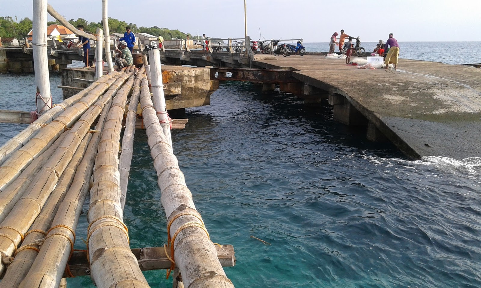 Perahu yang kami tumpangi, setelah melewati sabuk karang, tiba-tiba berbelok lagi ke arah laut menjauhi daratan. Padahal kalau arah kapal dipertahankan lurus saja, sudah mengarah ke pelabuhan. Si pemegang kendali kemudian bilang bahwa arah lurus tadi akan menuju daerah laut yang dangkal. Dan benar saja, saat perahu menyisir laut agak jauh, saya berdiri dan melihat hamparan batuan di bagian laut yang lebih dekat dengan daratan. Untung saja si pengemudi perahu mengenal dengan baik laut ini.